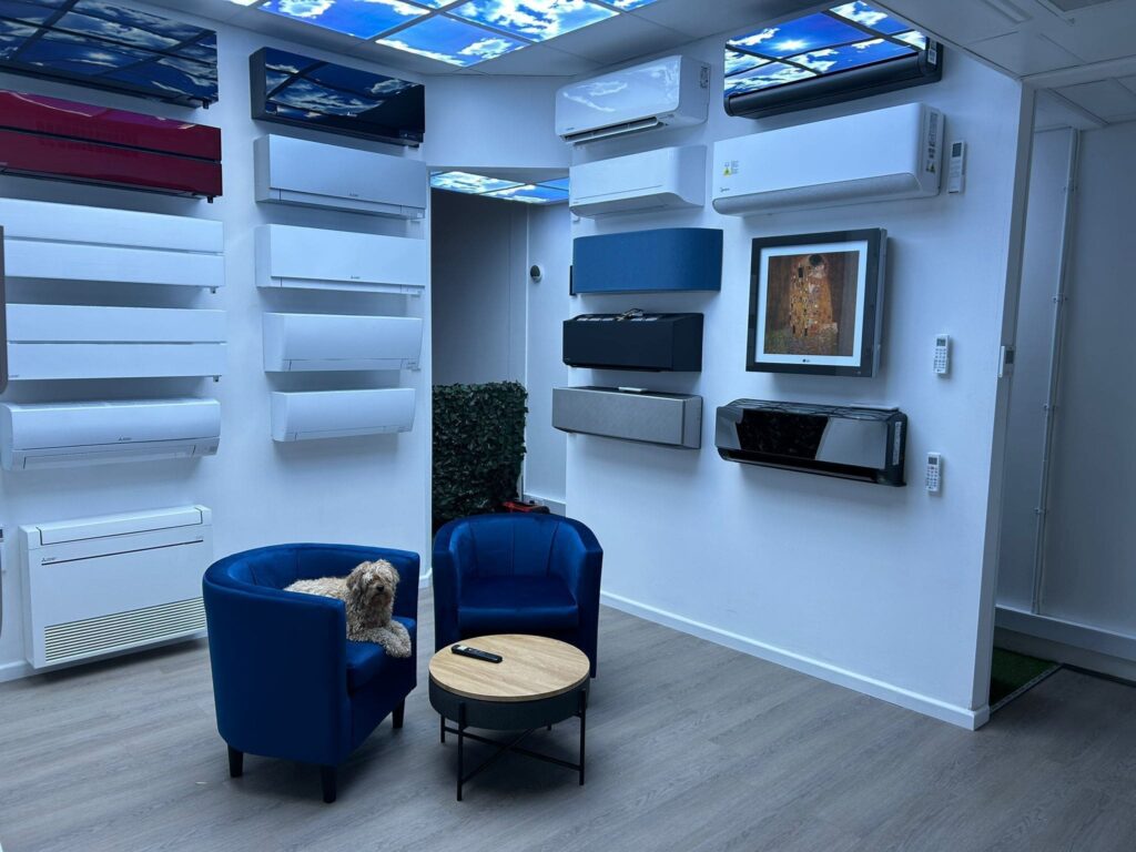 The showroom features a wide range of air con systems, from compact models suitable for small homes to larger systems designed for commercial spaces.